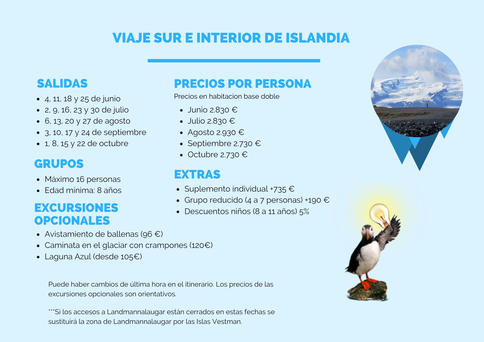 PRECIOS Y SALIDAS DEL VIAJE "SUR E INTERIOR DE ISLANDIA 8 DÍAS"