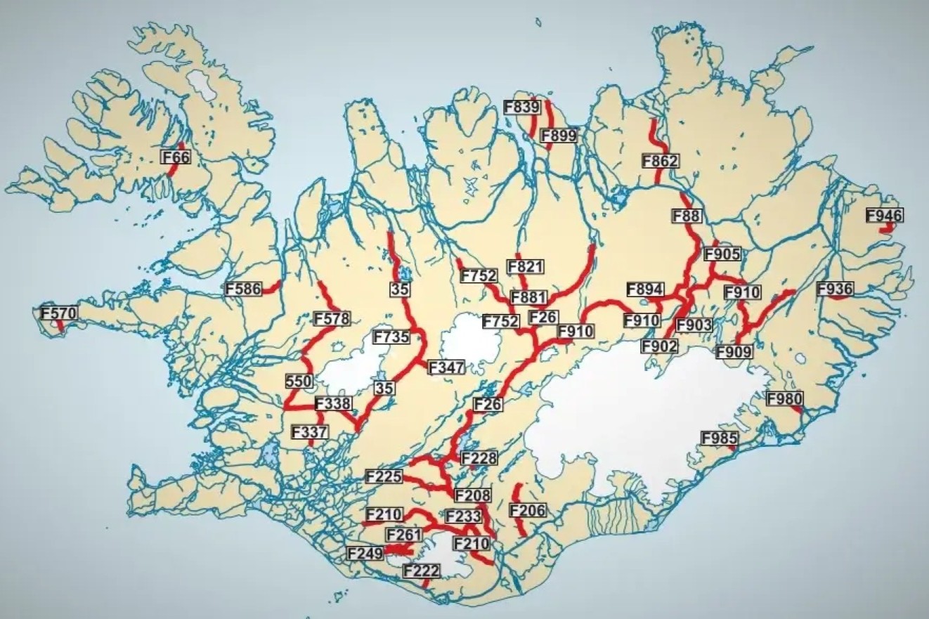 Maps and Main F-Roads in Iceland