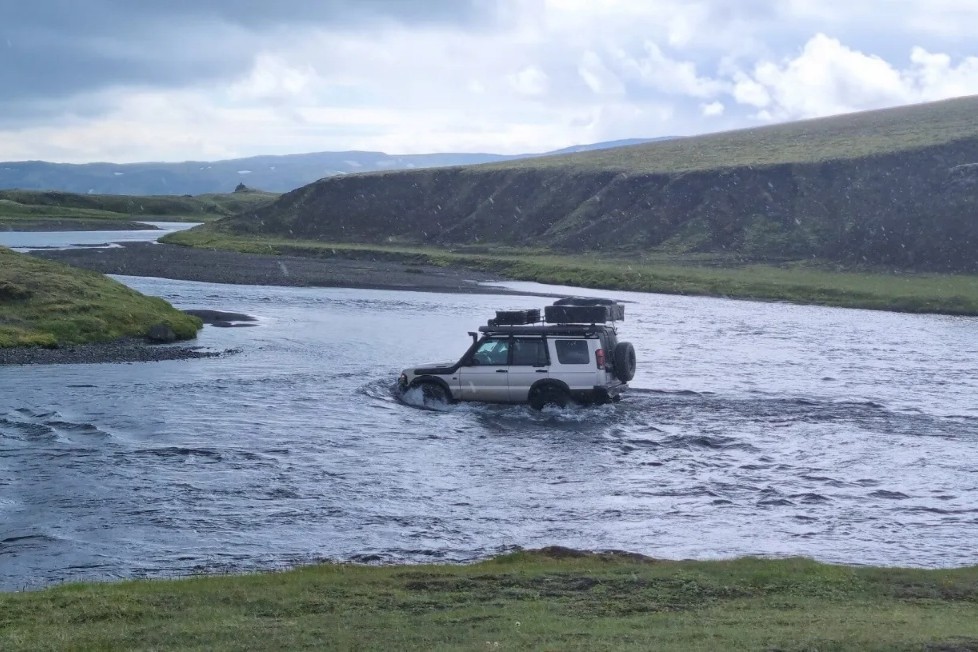 Many F-roads require crossing unbridged rivers. This is one of the biggest challenges and dangers for drivers in the Highlands.