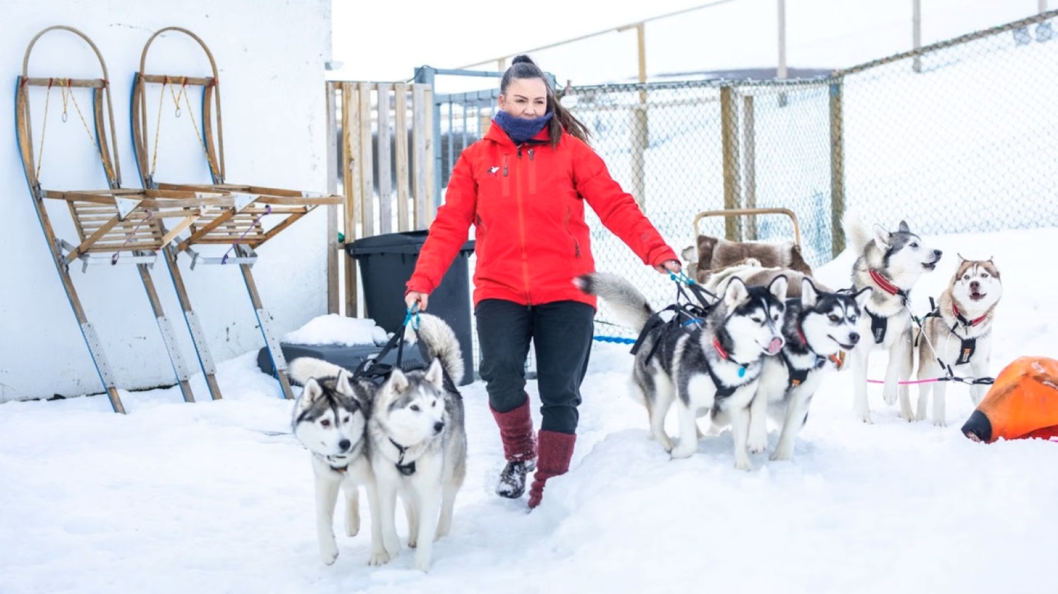 La experiencia comienza en una granja especializada donde viven los huskies entrenados para esta actividad. Los visitantes son recibidos por el musher, quien introduce la historia del dog sledding en Islandia y explica cómo funciona el equipo y el trineo.