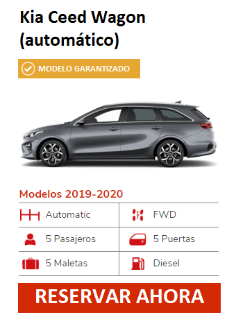 - Salvo que se indique lo contrario, con los coches de cateogoría pequeña o compacta no es posible garantizar el modelo ni la marca de coche de alquiler pero siempre recibirás la misma categoría seleccionada o superior.