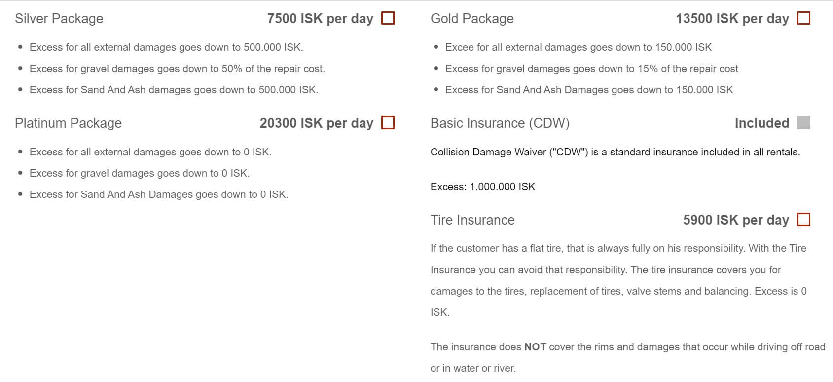 Franquicia por daños por grava o ventanas: 25.000 ISK