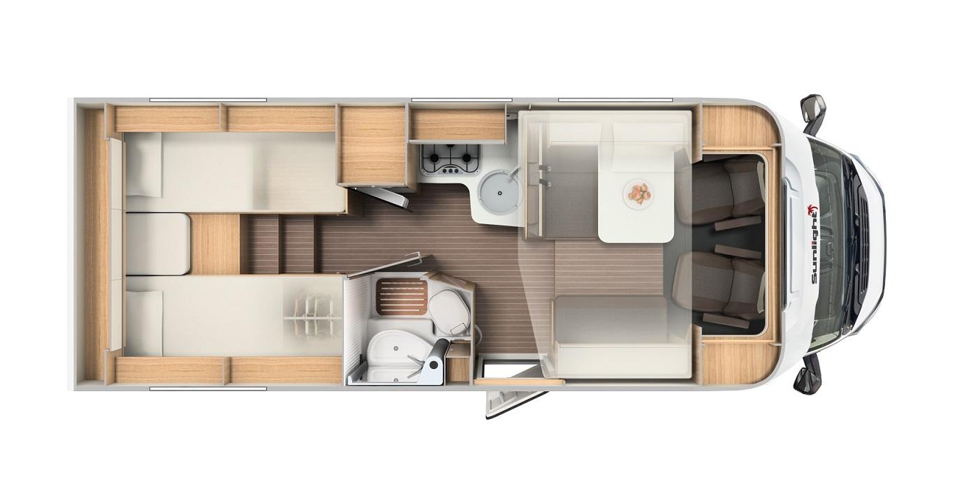 Descripción del vehículo: Esta autocaravana del fabricante Ford/Fiat/dethleffs.de/sunlight.de acomoda hasta 4 personas. Dispone de motor 2,3 JTD, transmisión manual y exterior de 7.38x2.33x2.91 metros. La autocaravana tiene un peso permitido de 3.495 kg. y una capacidad de carga de 680 Kg. La consumición media es de 10-12 L / 100 Km. Tiene radio FM con CD y capacidad de agua de 100 litros. Las autocaravanas tipo PLUS tienen un suplemento de 70 EUR/día.
