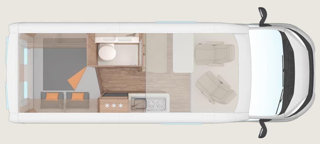 Descirpción del vehículo - NUEVO MODELO - : la autocaravana pequeña acomoda dos personas. Su exterior tiene una longitud de 5,9-7,6 metros, 2,5-2,4 metros de altitud y 2,5- 3,2 metros de ancho. Su peso max es 3500 kg. Los vehículos tienen motor Turbo Diésel con consumición media de 8-10 litros / 100 kilómetros. Dispone de transmisión manual, capacidad de agua de 100 litros y cama de 110-140 x 190-200 cm. No se requiere carnet de conducir especial para poder conducir este tipo de autocaravanas.