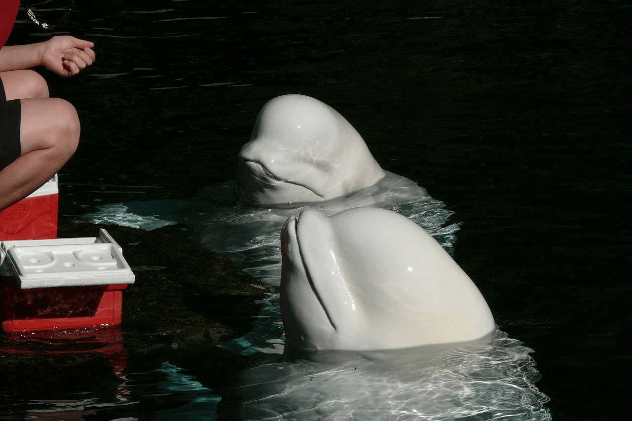 Las ballenas beluga Little White y Little Grey, nacidas en aguas del Ártico ruso, fueron capturadas a una edad temprana y entrenadas para espectáculos en el Changfeng Ocean World de Shanghái. Tras la adquisición del parque por parte de Merlin Entertainments, la compañía decidió que las ballenas no debían seguir participando en espectáculos. Así comenzó su largo viaje hacia un nuevo hogar en Islandia. En marzo de 2019, fueron trasladadas en avión desde Shanghái a Reikiavik, y luego por carretera y ferry hasta Heimaey, en las Islas Vestman, donde se encuentra el santuario marino.
