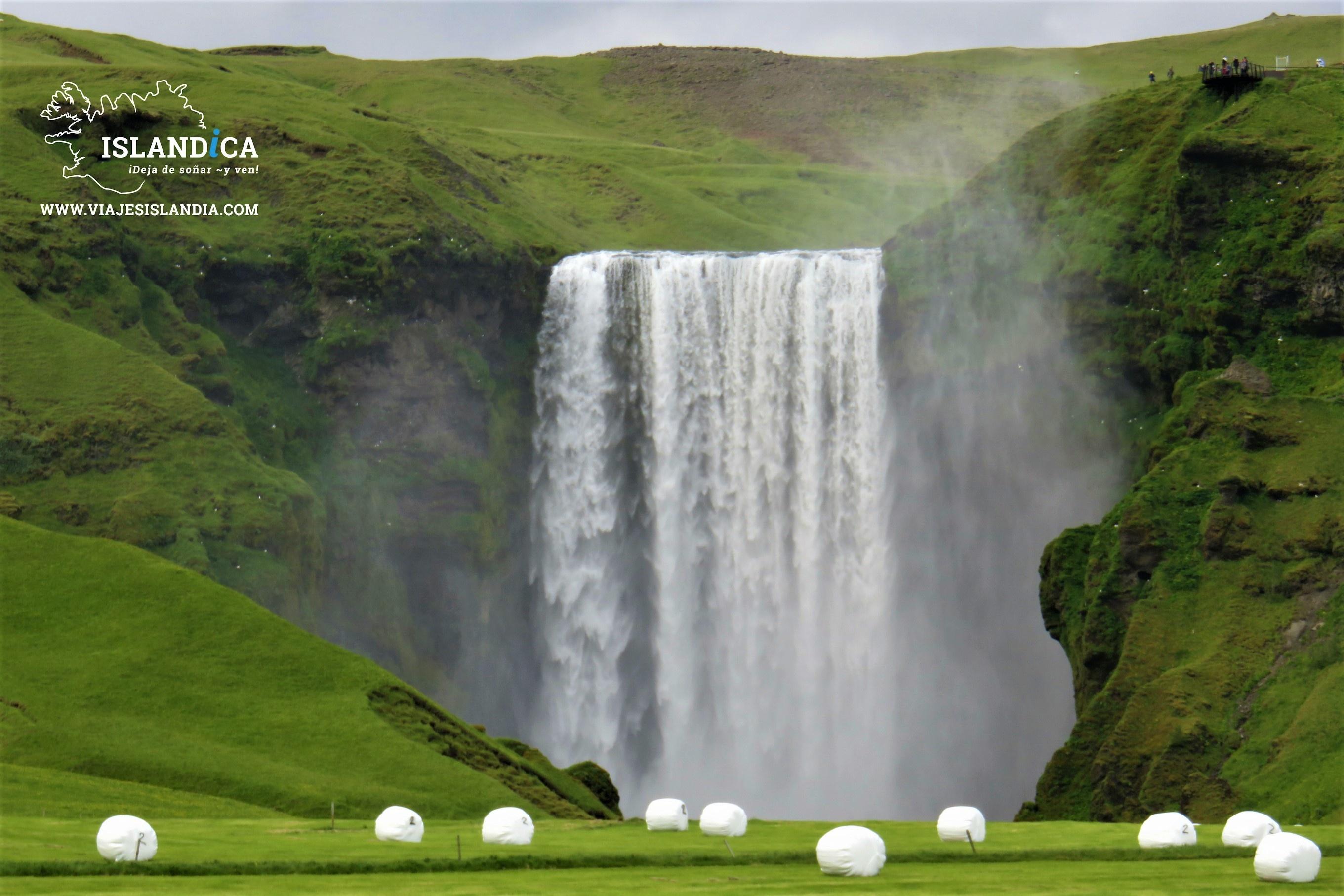Más hacia el este, a los pies del famoso volcán Eyjafjallajökull, se encuentra la majestuosa cascada Skógafoss. Tiene una caída de 60 metros y un ancho de 25 metros. Podés subir por una escalera para obtener vistas panorámicas o explorar su base y sentir la fuerza de su neblina. Esta cascada está cargada de historia y leyendas, y es perfecta para fotos memorables.