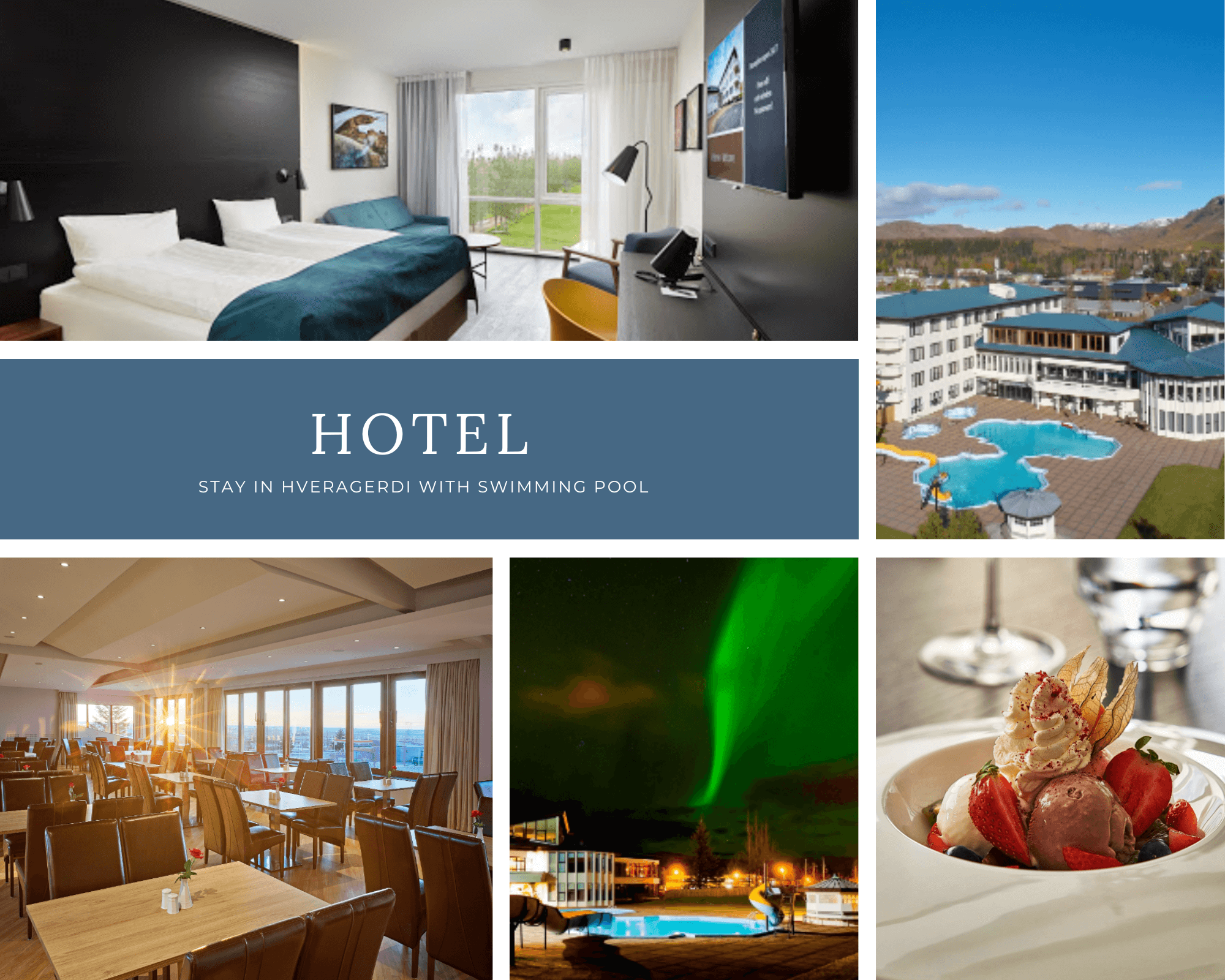 Accommodation tonight in Hveragerði, a charming hot springs town. Your hotel features thermal pools, sauna, and jacuzzi.