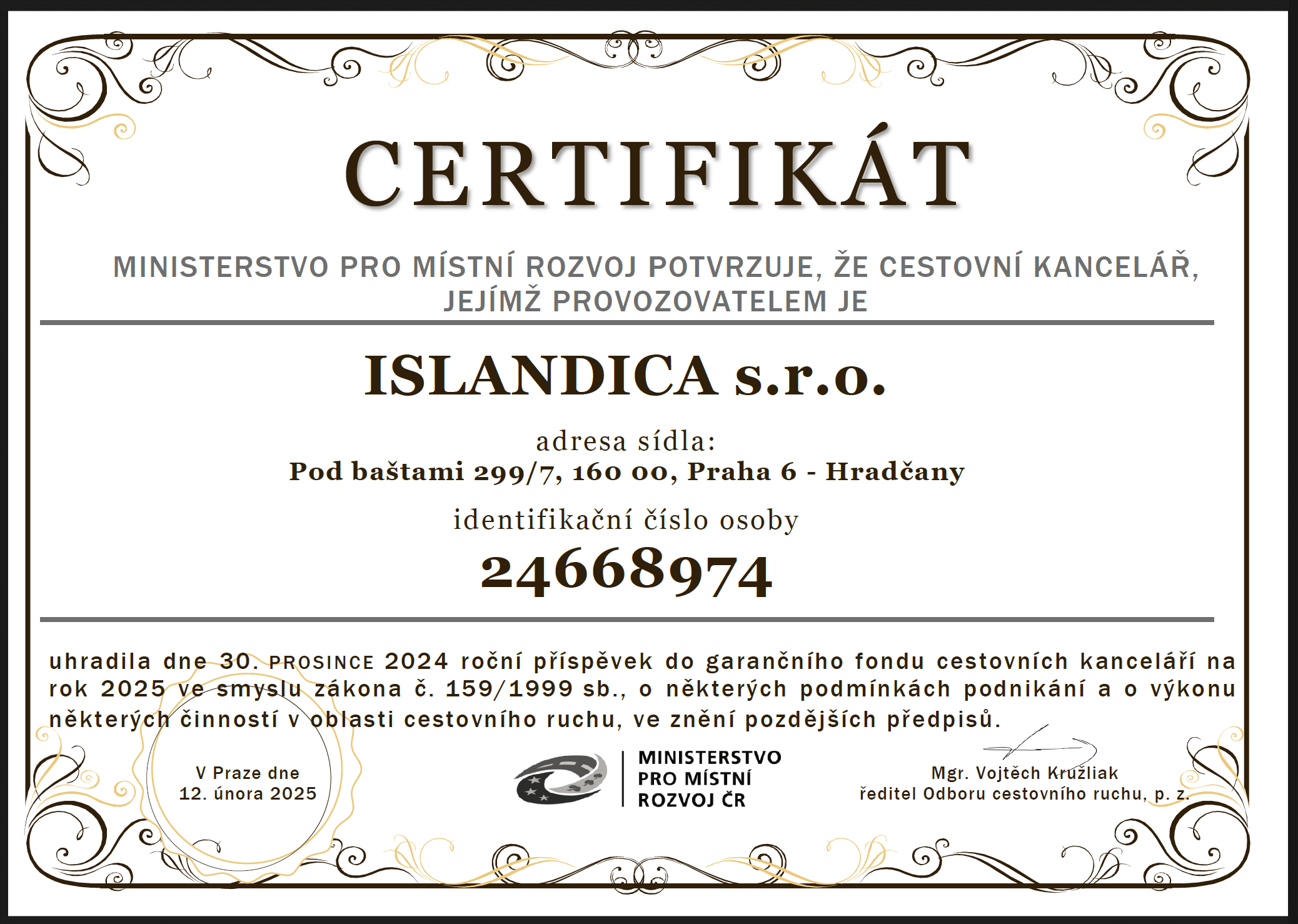 ISLANDICA s.r.o. (Ltd.) is a business, enrolled in the Commercial Registry under the Registration number: VAT/ DIC: CZ24668974.