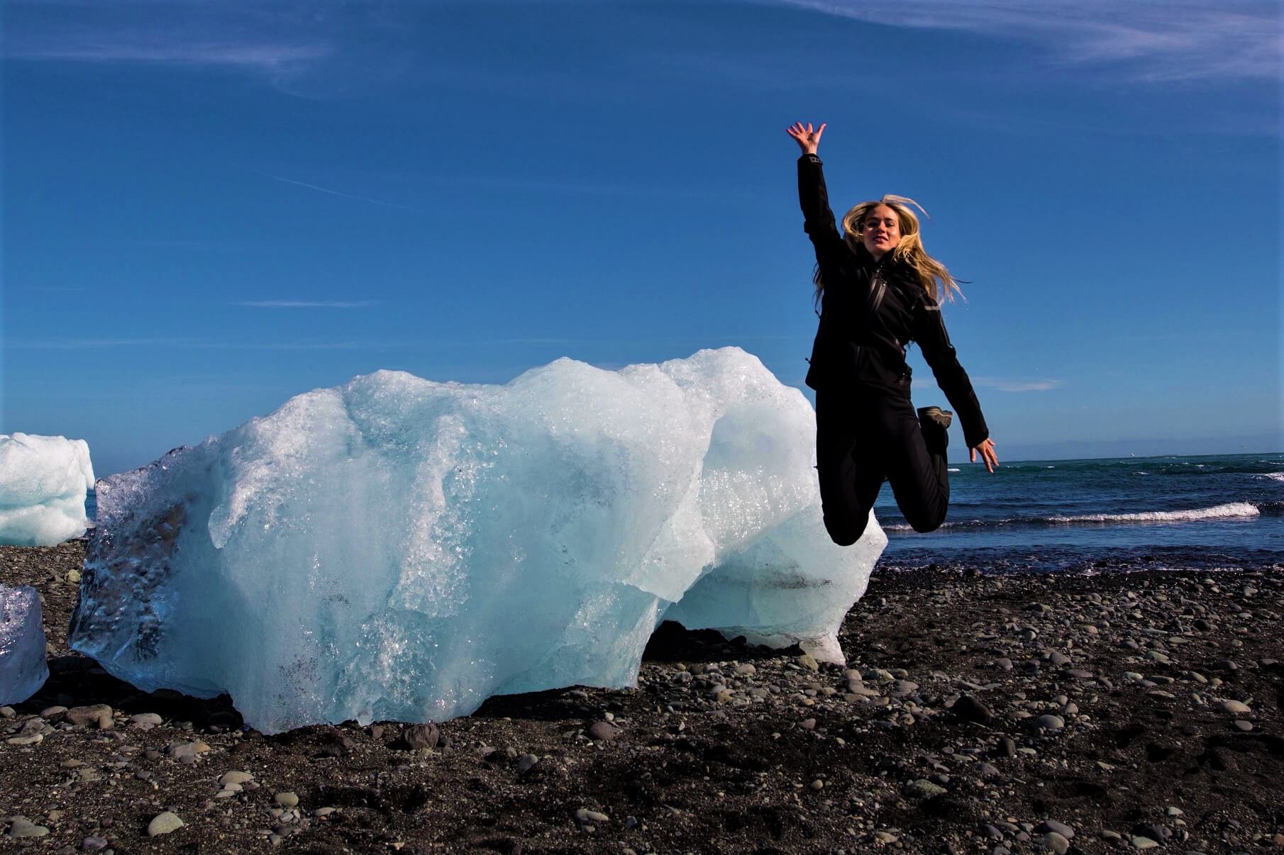 Después, nos dirigiremos a la joya de este recorrido, la laguna glaciar Jökulsárlon. Para ellos cruzaremos el puente más largo de Islandia (900 metros) y pasaremos por el Parque Nacional de Skaftafell, donde se encuentra el gran glaciar Vatnajokull. En la laguna glaciar Jökulsárlón tendremos tiempo para disfrutar de las vistas increibles de los ícebergs flotantes y tomaremos un tour en barco anfibio. El barco navega entre los icebergs flotantes de la laguna durante unos 30 minutos. Con suerte, veremos las focas que suelen nadar en esta laguna. Además, visitaremos la conocida como "playa de diamantes", una playa de arena negra cerca de la laguna glaciar, donde los icebergs desembocan en la costa creando un entorno realmente mágico.