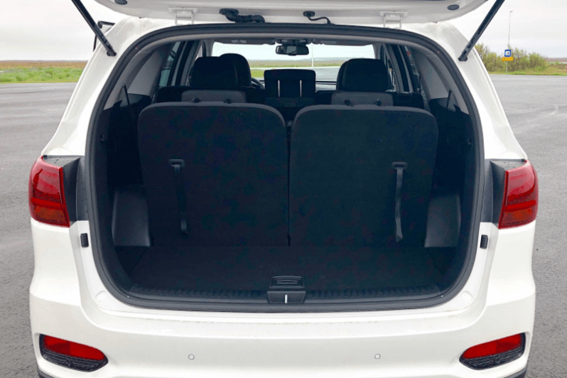 Con este coche de alquiler 4x4 podrás llegar a cualquier lugar de Islandia tranquilamente, sin esfuerzo y con todo el confort impulsado por un motor diesel de 2.2 litros de bajo consumo de combustible. Las dimensiones son 4,80 metros de longitud, 1,89 metros de ancho y una aultura de 1,68 metros. El maletero con 7 personas es de 320 litros, pero con la última fila plegada llega hasta más de 1100 litros.