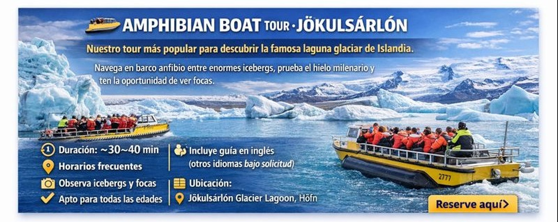 RESERVA LA EXCURSIÓN EN BARCO ANFIBIO EN JÖKULSÁRLÓN: