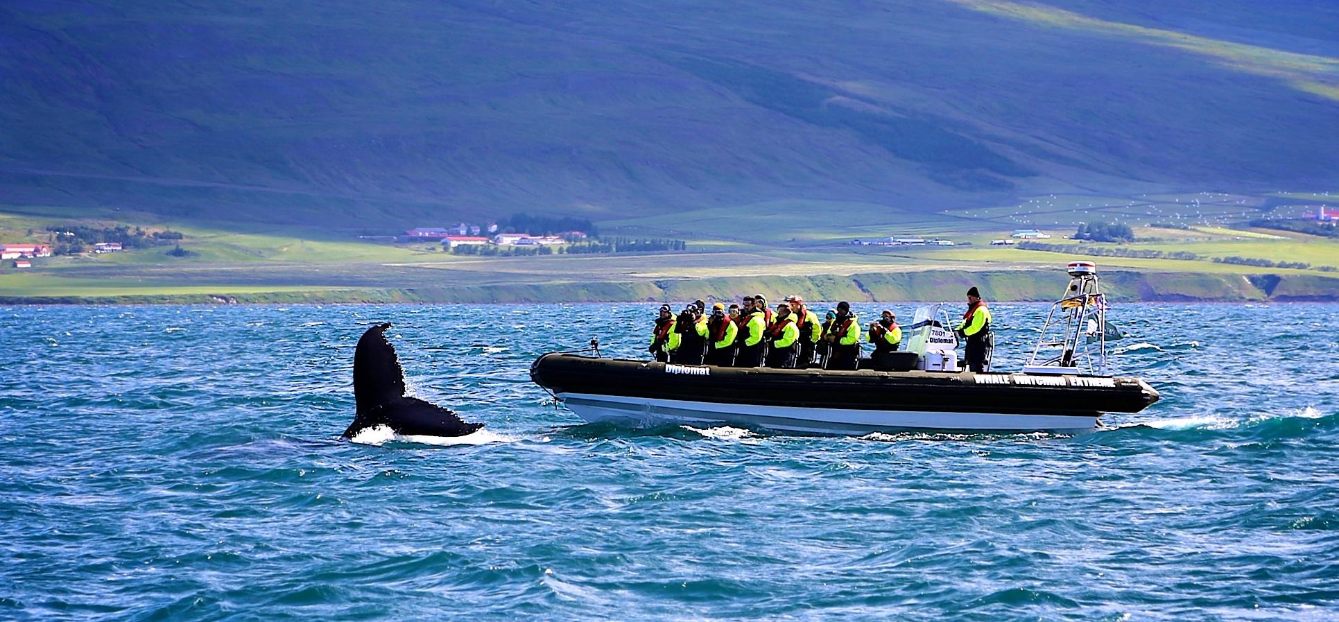 Esta excursión es ideal para aquellos viajeros que no quieren solo disfrutar de un entorno de una belleza natural inigualable sino también vivir una experiencia única cruzando a toda velocidad la hermosa bahía de Akureyri en busca de ballenas.