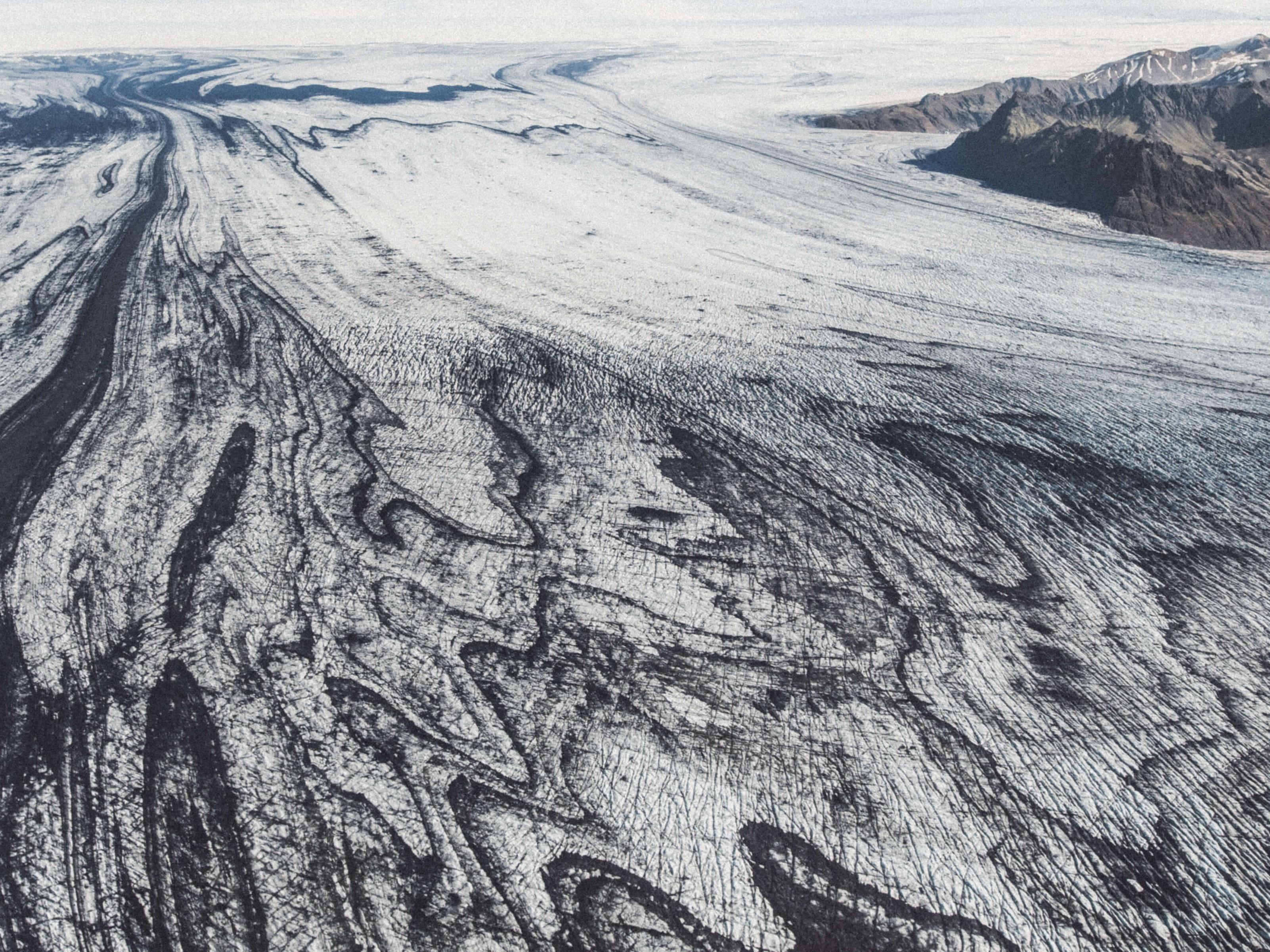 En el camino de regreso a Skaftafell, los campos de ceniza volcánica negra, los lagos de montaña y los ríos glaciales proporcionan contrastes de color aún más nítidos. Sentirás como si estuvieras volando sobre una hermosa pintura. Entre otros lugares, sobrevolaremos Eldgjá, el cañón volcánico más grande del mundo; Langisjór, un lago de 20 km de largo en las tierras altas, 670 m sobre el nivel del mar; las lenguas glaciares Skeiðarárjökull y Síðujökull; y muchos lugares hermosos al oeste del glaciar Mýrdalsjökull.