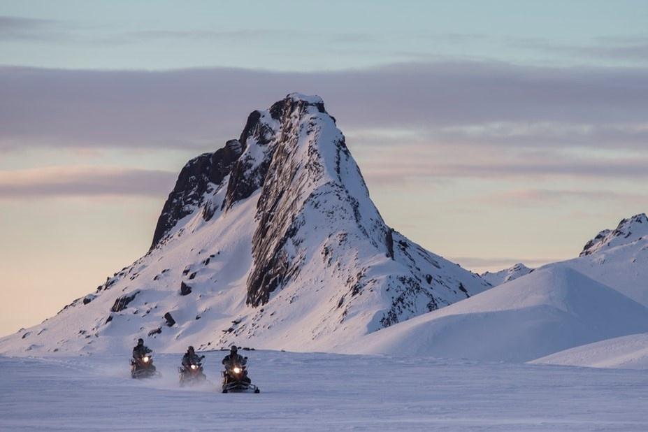 Una vez en Jaki, el campo base del glaciar, nos montaremos en las motos de nieve (tras recibir todas las instrucciones necesarias de los expertos) y viviremos una aventura única en el mundo de hielo. Exploraremos así de la mejor forma posible el glaciar y podremos disfrutar de unos paisajes inolvidables hasta llegar al increíble túnel de hielo. La aventura en motos de nieve dura unos 30-45 minutos (dos personas por moto de nieve). Al llegar al túnel de hielo, nos bajaremos de las motos de nieve y comenzaremos la exploración en el interior del túnel, que durará 1 hora aproximadamente. Nos adentraremos cerca de 300 metros dentro del glaciar para vislumbrar los tonos más brillantes de azul cristalino que aguardan en los numerosos túneles y cavidades del glaciar.