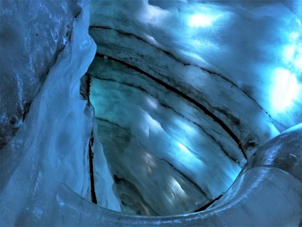 La primera exposición del museo Perlan, "Glaciares y hielo", se inauguró en el verano de 2017 y está integrada en uno de los seis tanques de agua caliente que forman Perlan. Comienza con una cueva de hielo que se ha construido dentro del edificio, la primera de este tipo en todo el mundo y donde podrás experimentar los mismos sonidos, los olores y todo el frío que en una cueva de hielo dentro de un glaciar, además de aprender sobre sus capas de ceniza y las profundas y oscuras grietas.