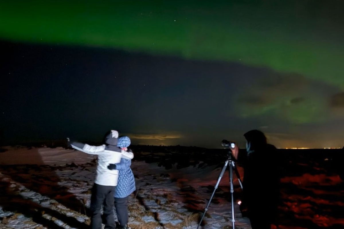 Mientras esperas que el cielo cobre vida, disfruta de un chocolate caliente casero, pasteles islandeses tradicionales y calentadores de manos. Además, un fotógrafo profesional capturará las mejores imágenes de la noche para que guardes un recuerdo inolvidable.