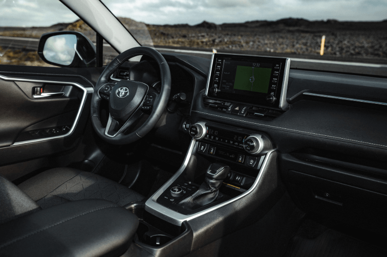 El maletero del coche de alquiler Toyota Rav4 dispone de un volumen mínimo de 580 litros que se puede ampliar hasta los 1.690 litros abatiendo los asientos traseros. Su diseño, con trazos y líneas rectas muy marcadas y techo de tipo flotante le da una imagen muy deportiva. Su interior es sobrio y ordenado y está equipado con asistentes a la conducción y sistemas de seguridad.