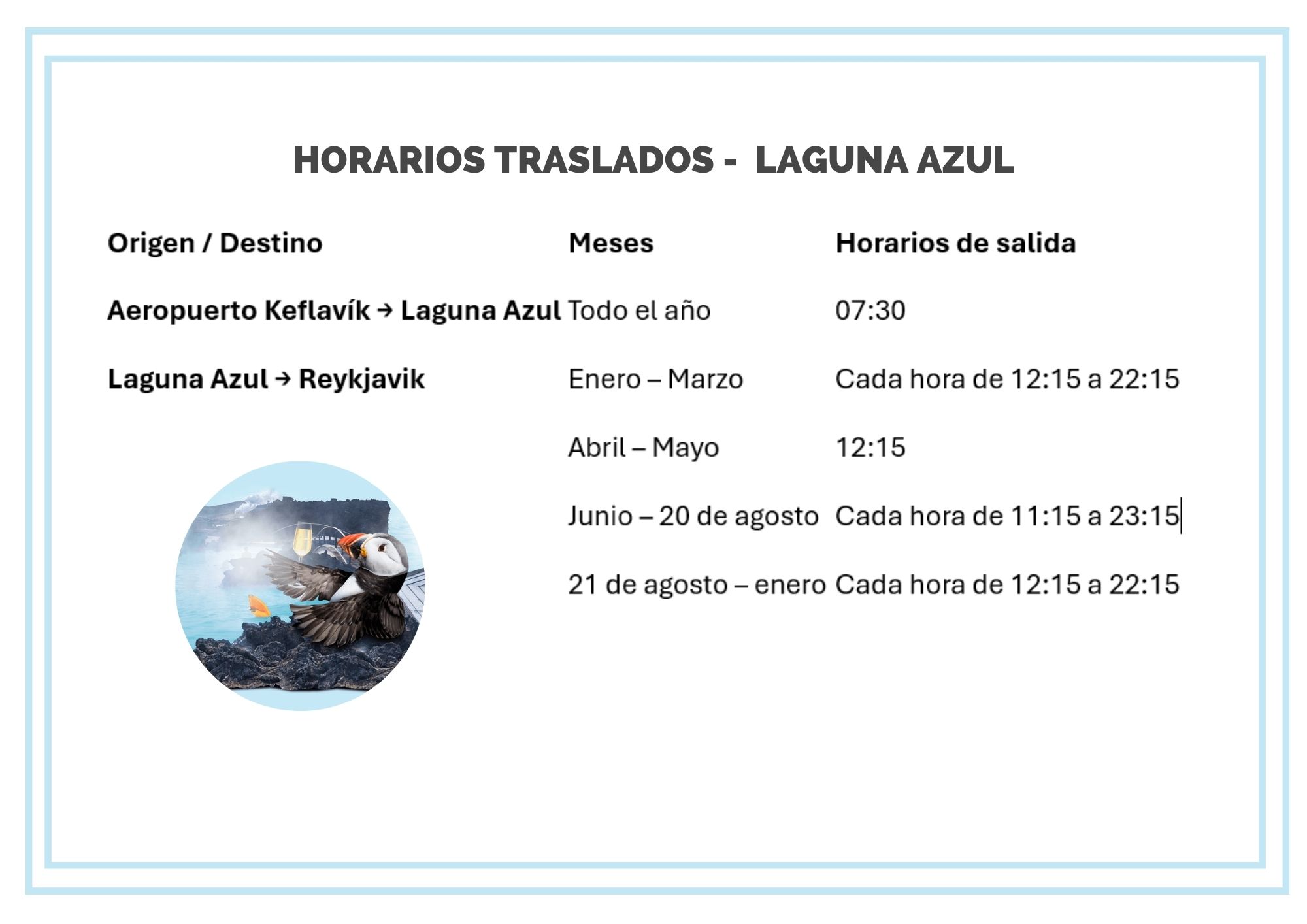 DETALLES DEL TRASLADO AEROPUERTO - LAGUNA AZUL-REYKJAVÍK:
