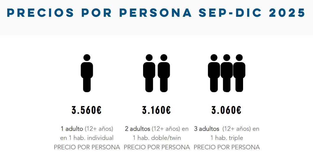 - Diciembre 2025: 1, 8, 29 (Fin de Año - programa especial - 1 plaza disponible)